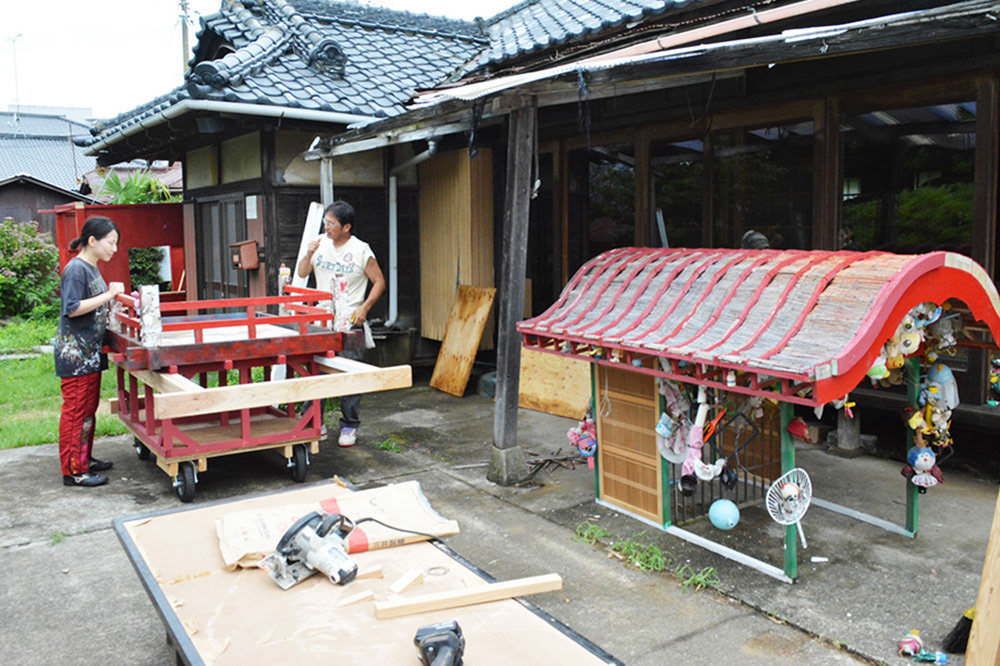 ひたちなか市 那珂湊地区に300年前から伝わる、伝統神事・八朔祭りの風流物である屋台を見よう見まねで作り、屋台を子どもたちと一緒に曳くプロジェクト。