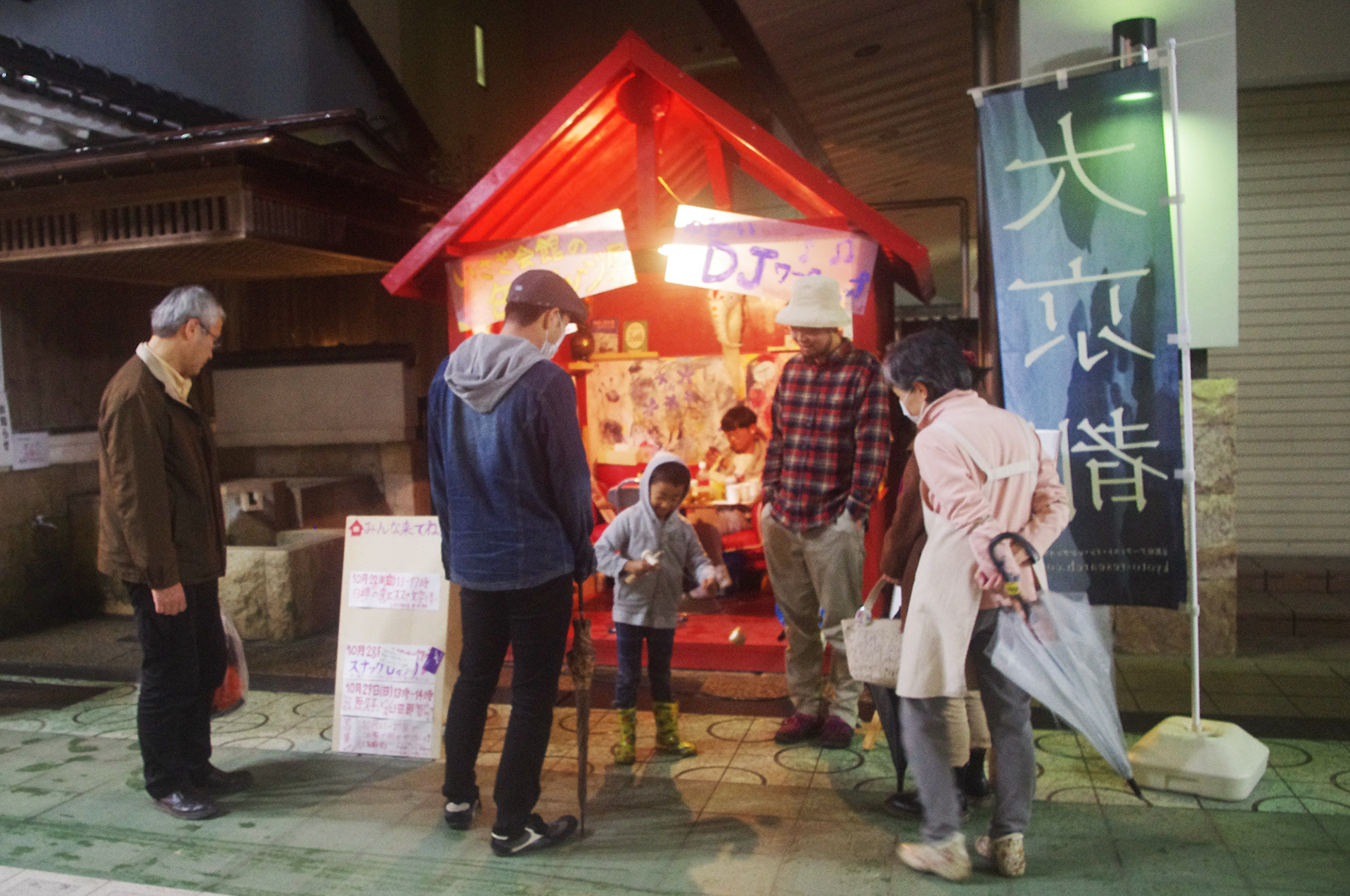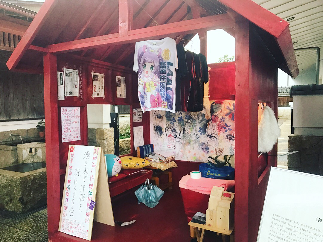 西舞鶴マナイ商店街にある、真名井の水汲み場には、毎日人が水を汲みにやって来る。昨年度の「京都:Re-Search in 舞鶴」から選抜された臼田那智は今回、その隣に赤い家を建てた。