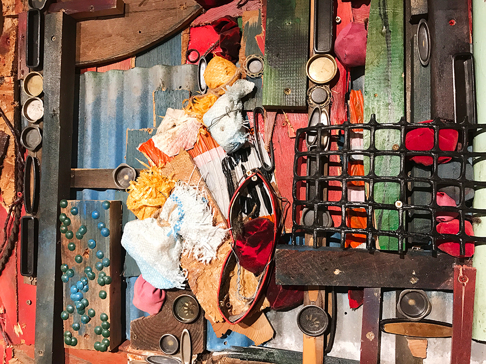 ベニヤ板の廃材 , ラッカースプレー ,透明樹脂 , 紙粘土 , アクリル その他ミクストメディア