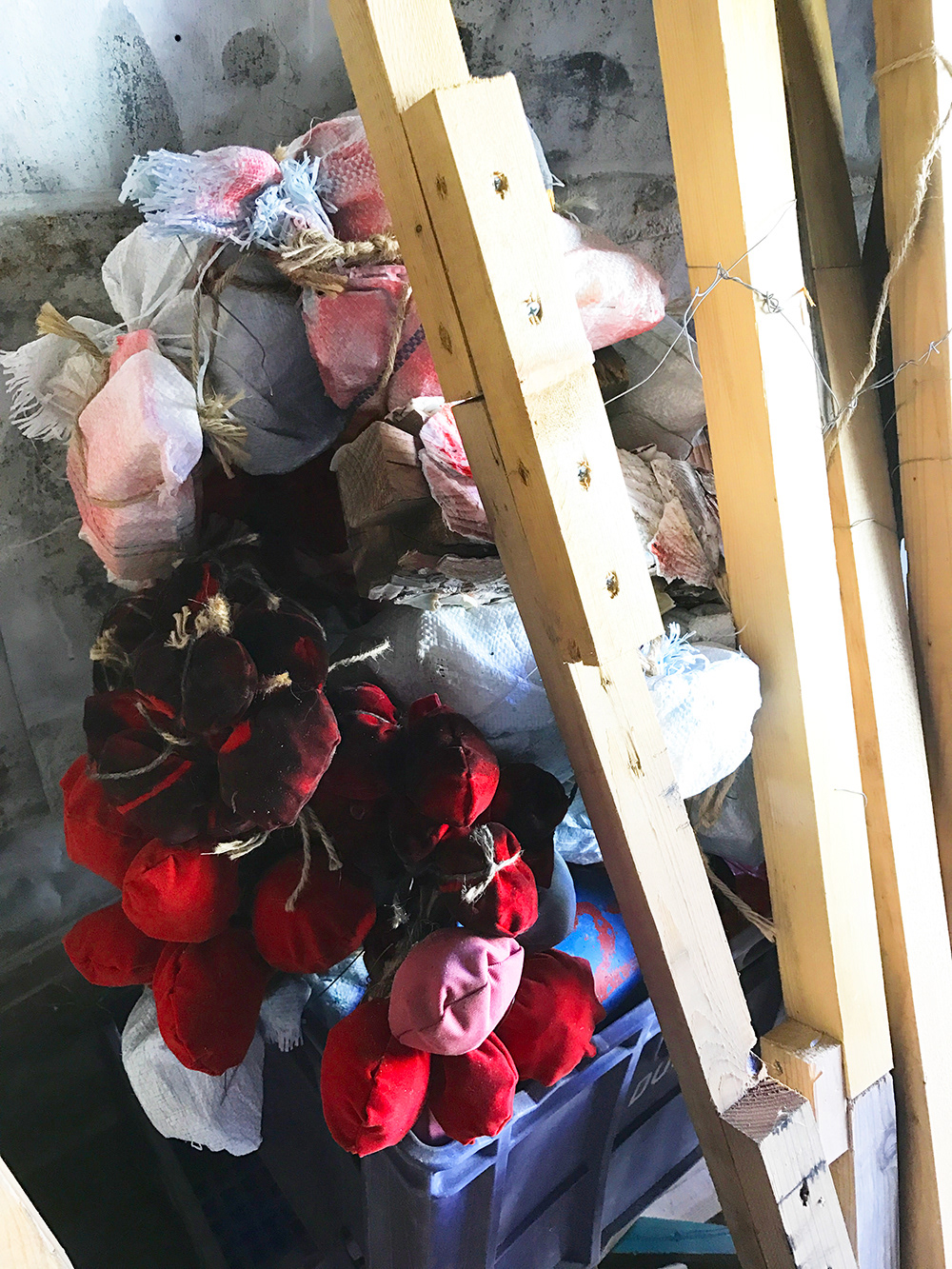 これら2つの作品を同時に展示し、自身の制作において重要な「廃材」と「赤」を強調し、共存させた。