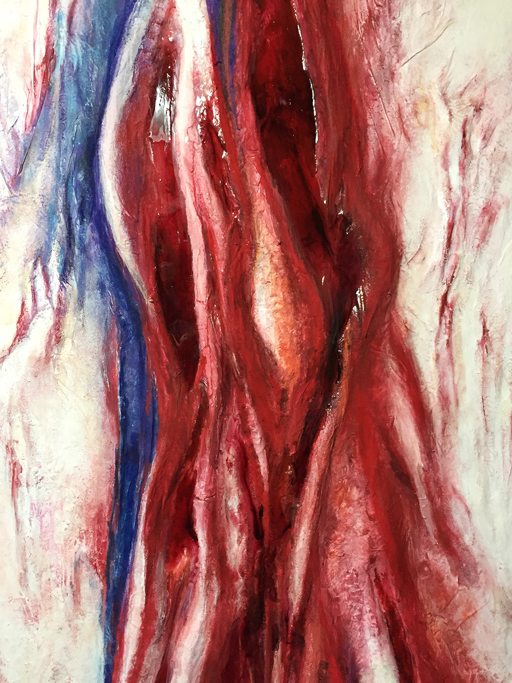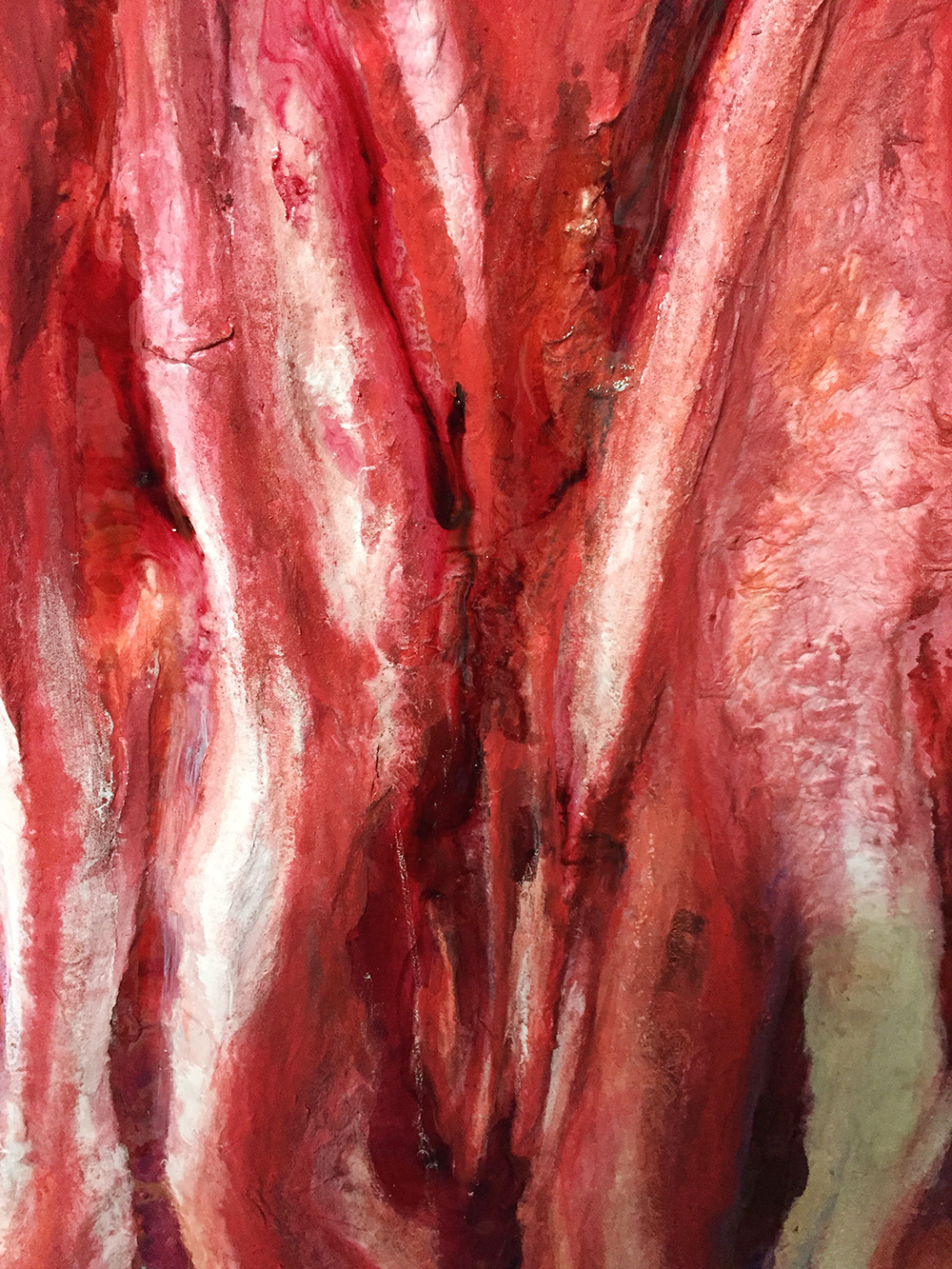 素材:木製パネルに紙粘土,パルプ紙,和紙,顔料,透明樹脂