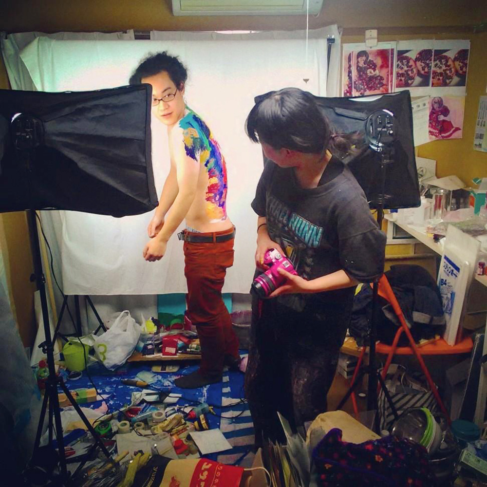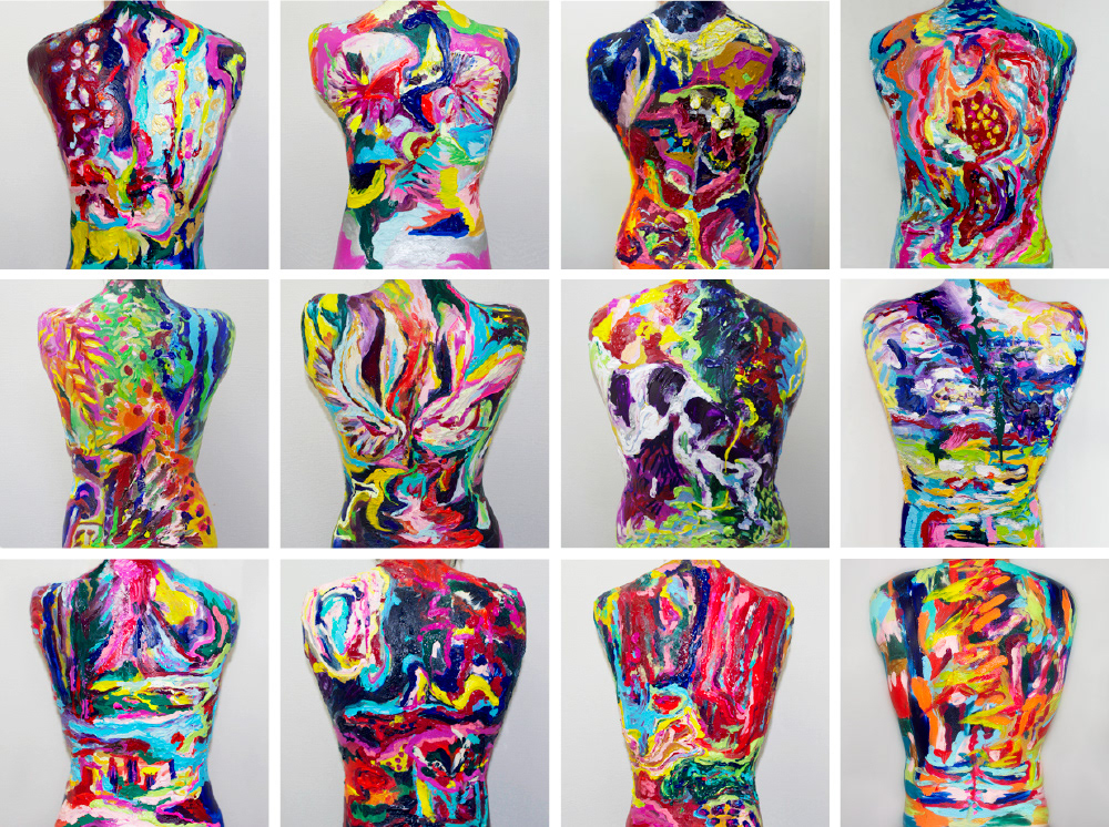 素材:人の背中にアクリル
