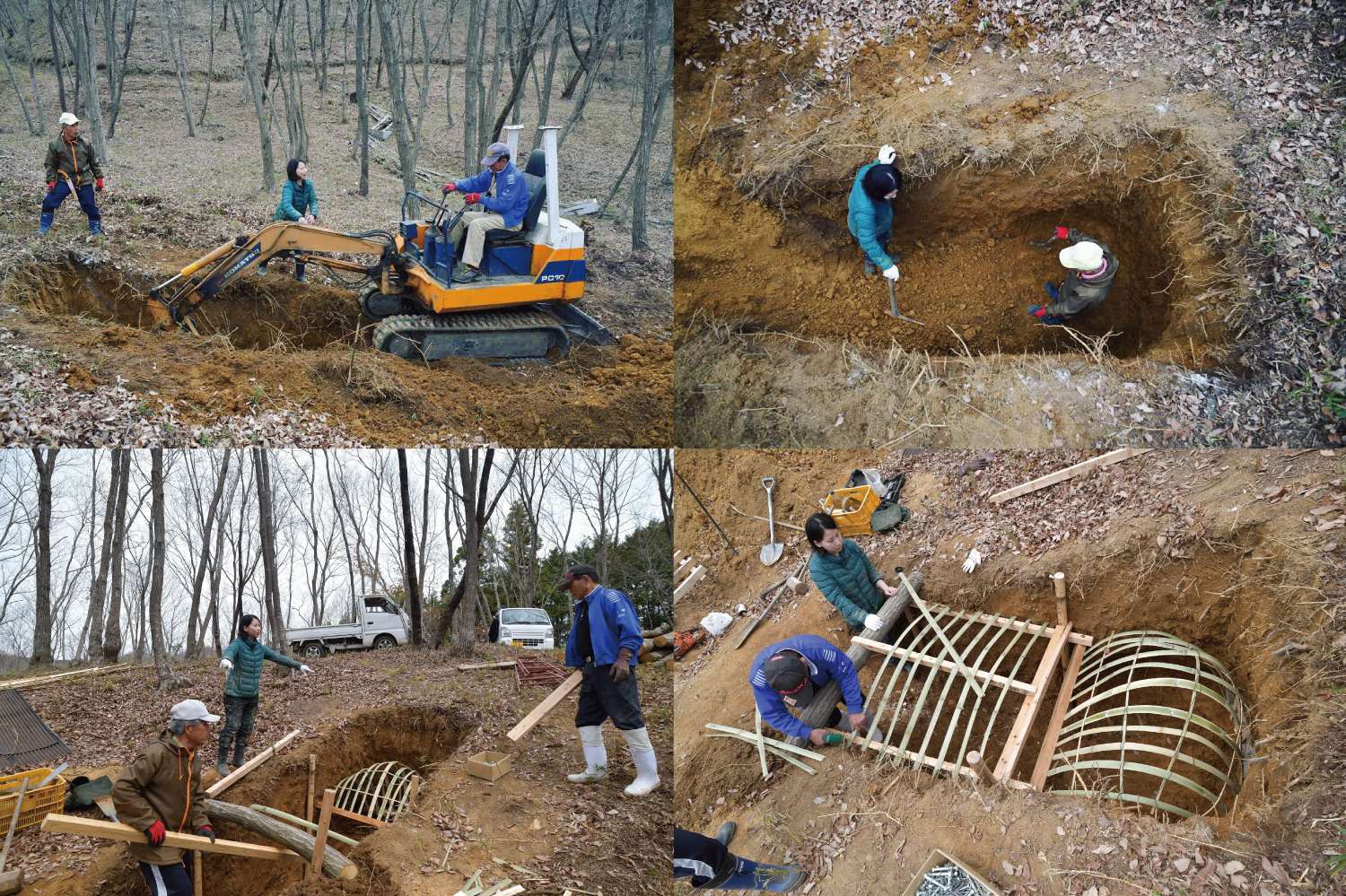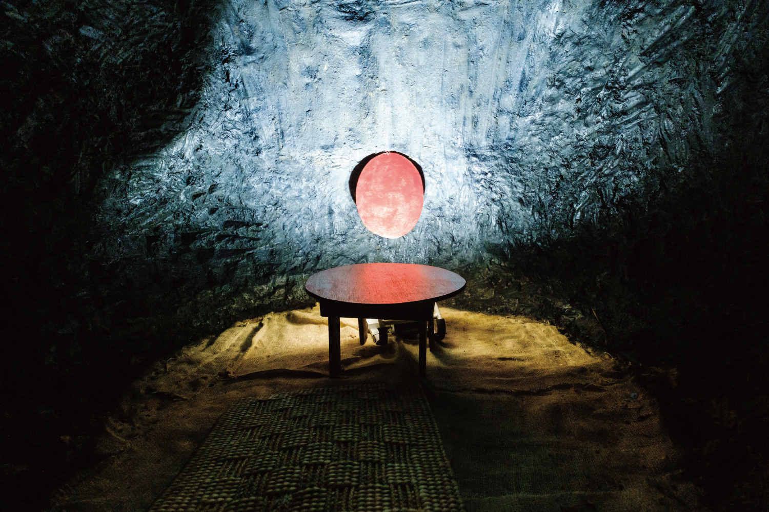 「よろこびの森」という芸術作品が並ぶ、地元民により整備が施された森(山)の中で穴を掘った。深さは2m、奥行きは3m程。洞窟のような通路を潜ると、赤い楕円のオブジェが正面に飾られ、ちゃぶ台と座布団も置かれている。そこはたった一人のみが入れる自分自身と向き合う空間で、地上に這い出たとき再び生まれる感覚を帯びる。