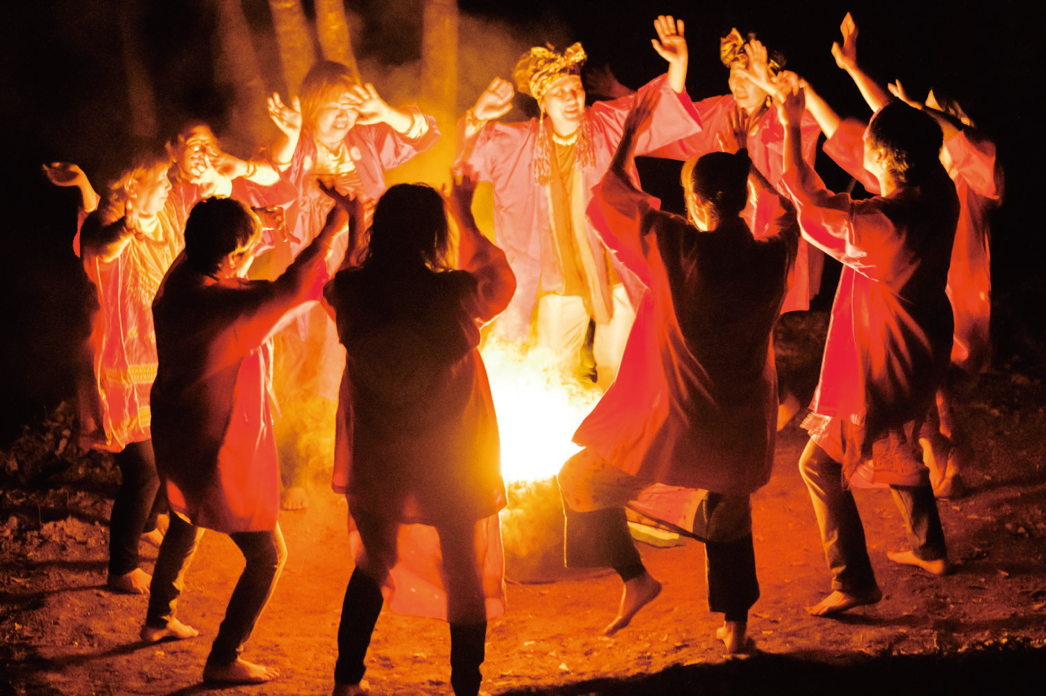 地元民の協力を得て、ある日穴のすぐ横で、夜に焚き火をしながら10人ほどで輪を囲み、赤い衣装を纏い裸足になって、アフリカンダンスを踊った。