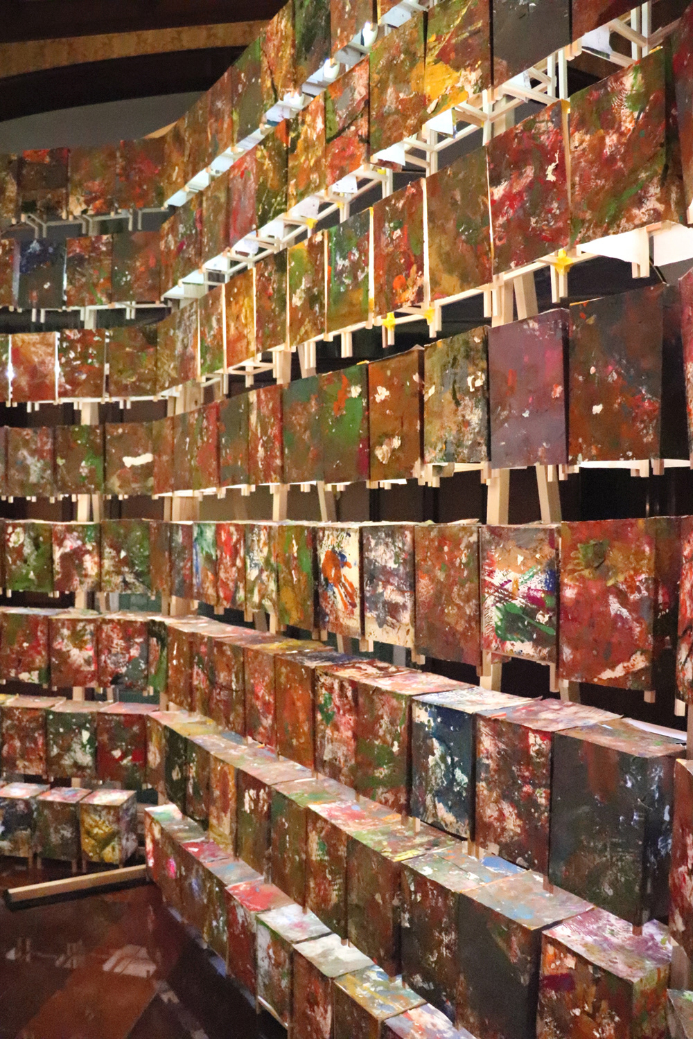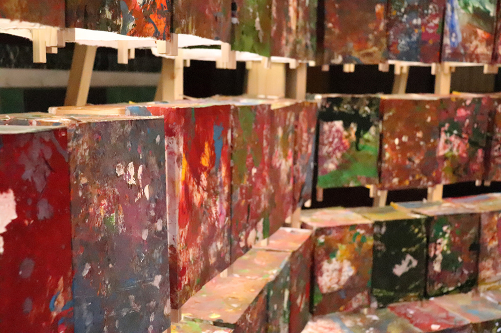 みんなが無我夢中で絵の具を散りばめていくと、所々がどす黒い色にも化ける。そこをよく見ると、綺麗な色が隠されているようにも見える。全体が力強く汚くとも、綺麗なところを見つけてあげる。