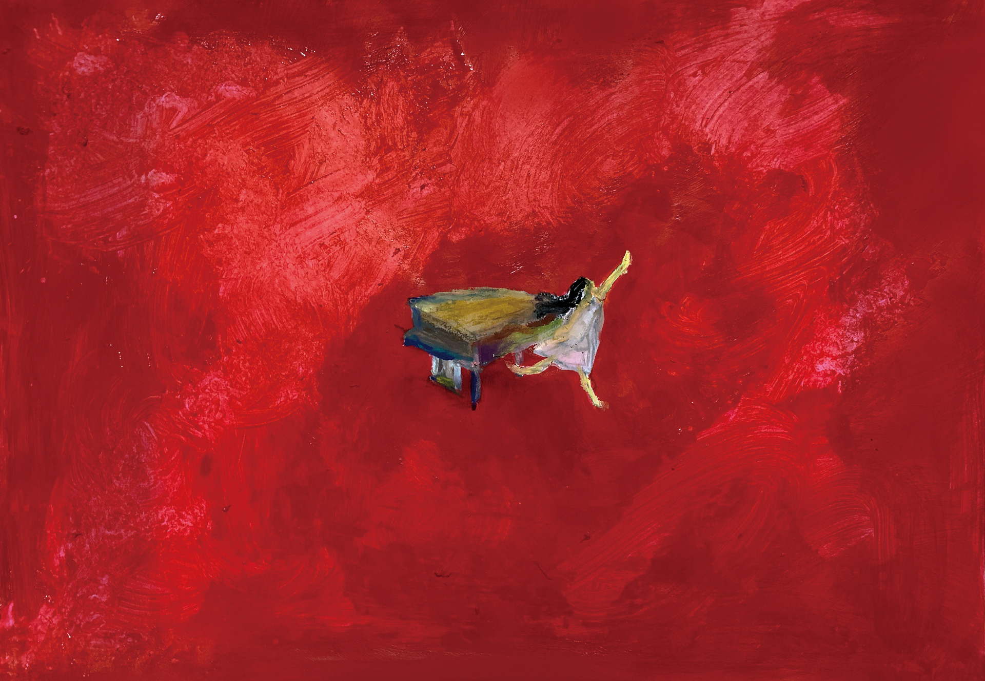また、これまでの作家の作品に頻出する赤色そのものを主題として、制作の最中に赤色と向き合う時間を、これまでの作品すべてに共通する赤色の意味合いを改めて確かめる行為とした。